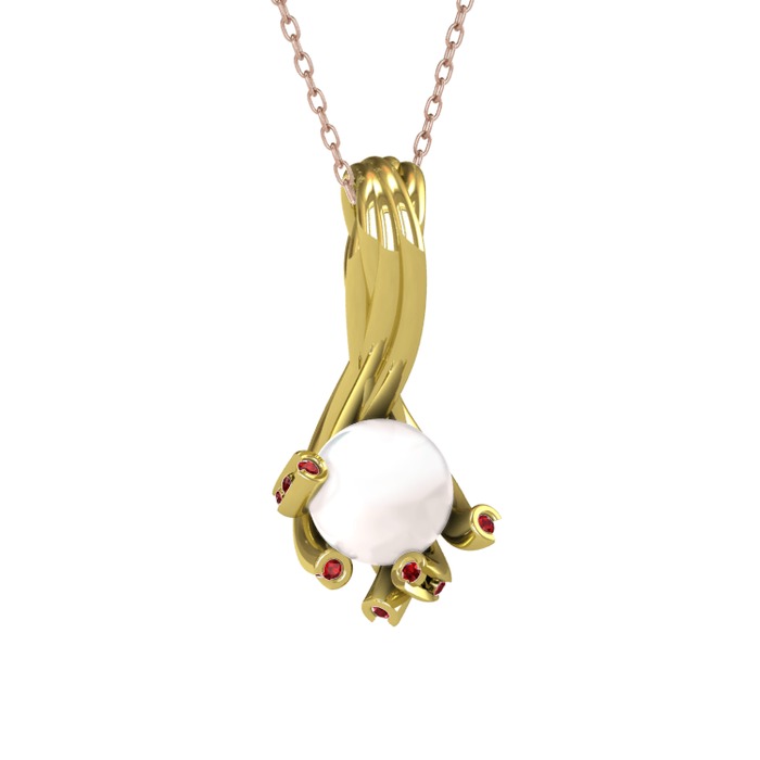 Inci ve garnet 14 ayar altın kolye (40 cm rose altın rolo zincir)
