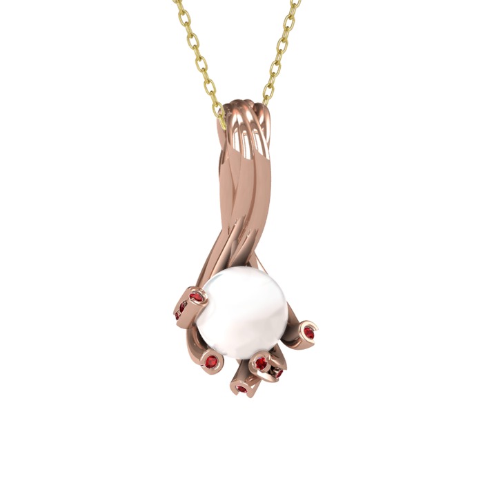 Inci ve garnet 14 ayar rose altın kolye (40 cm altın rolo zincir)