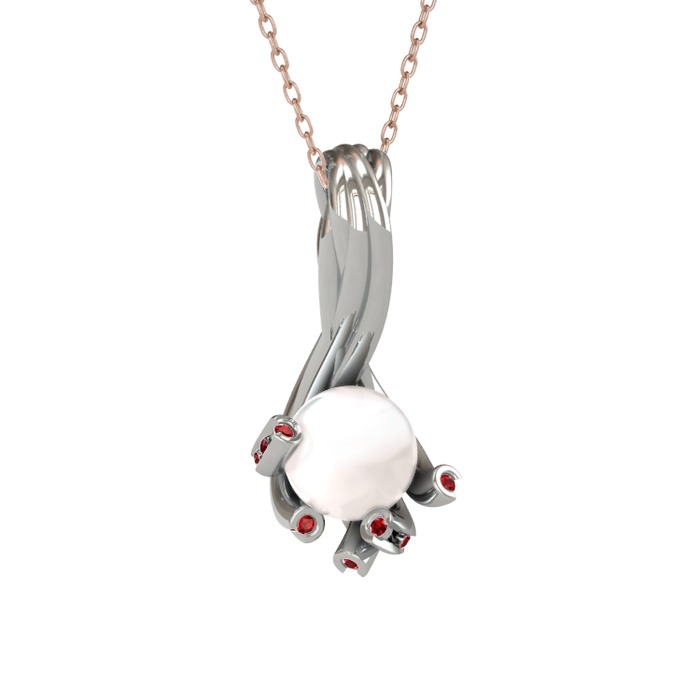 Inci ve garnet 18 ayar beyaz altın kolye (40 cm rose altın rolo zincir)