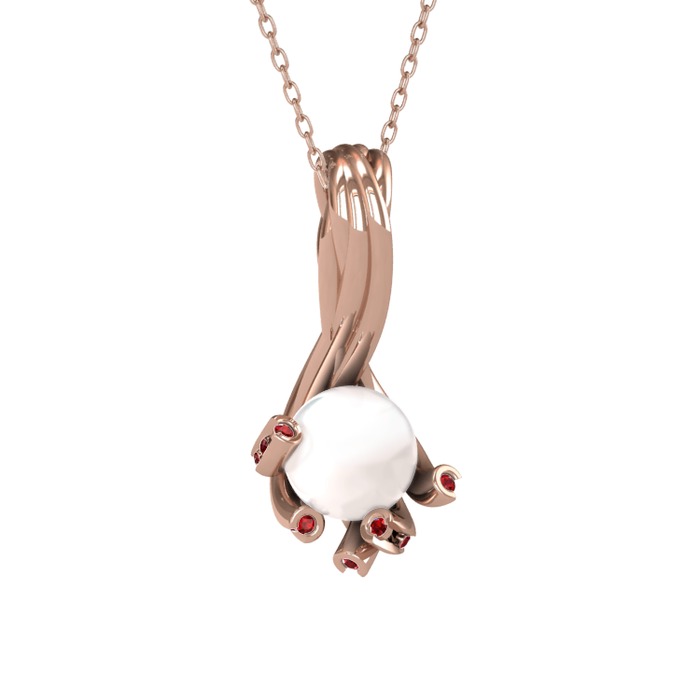 Inci ve garnet 8 ayar rose altın kolye (40 cm gümüş rolo zincir)