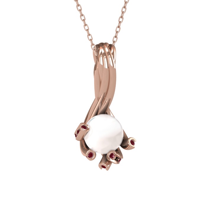 Inci ve kök yakut 14 ayar rose altın kolye (40 cm rose altın rolo zincir)