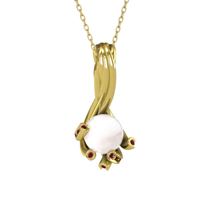 Inci ve kök yakut 925 ayar altın kaplama gümüş kolye (40 cm altın rolo zincir)