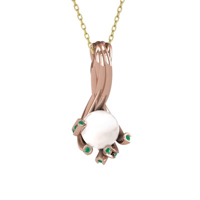 Inci ve kök zümrüt 8 ayar rose altın kolye (40 cm altın rolo zincir)