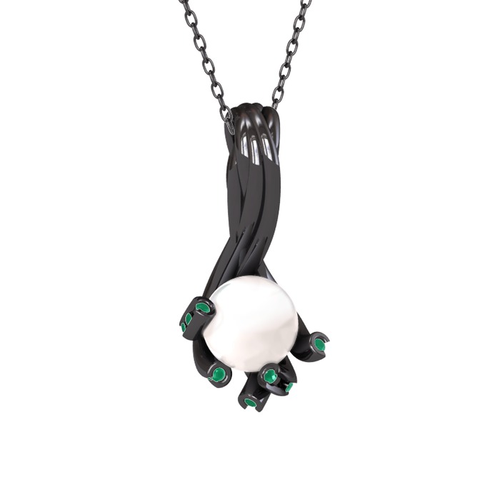 Inci ve kök zümrüt 925 ayar siyah rodyum kaplama gümüş kolye (40 cm gümüş rolo zincir)