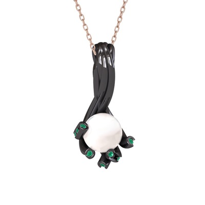 Inci ve kök zümrüt 925 ayar siyah rodyum kaplama gümüş kolye (40 cm gümüş rolo zincir)