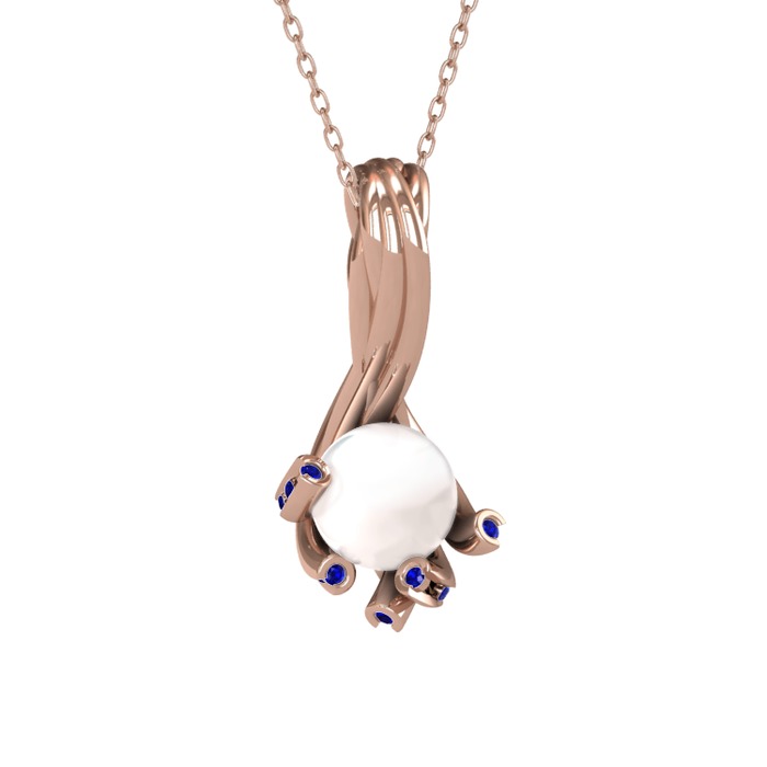 Inci ve lab safir 14 ayar rose altın kolye (40 cm rose altın rolo zincir)
