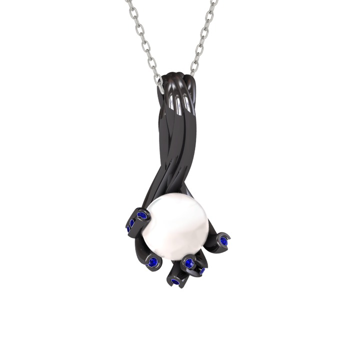 Inci ve lab safir 925 ayar siyah rodyum kaplama gümüş kolye (40 cm beyaz altın rolo zincir)