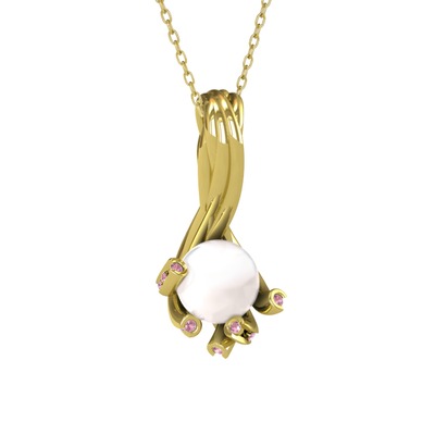 Inci ve pembe kuvars 18 ayar altın kolye (40 cm altın rolo zincir)