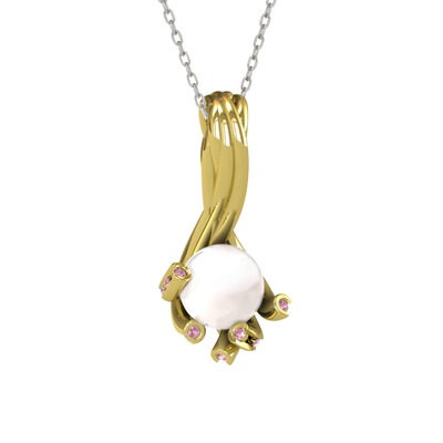 Inci ve pembe kuvars 925 ayar altın kaplama gümüş kolye (40 cm beyaz altın rolo zincir)