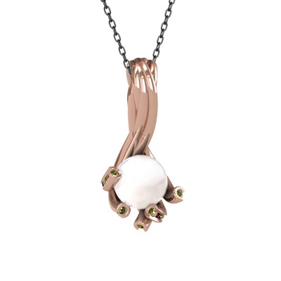 Inci ve peridot 8 ayar rose altın kolye (40 cm gümüş rolo zincir)
