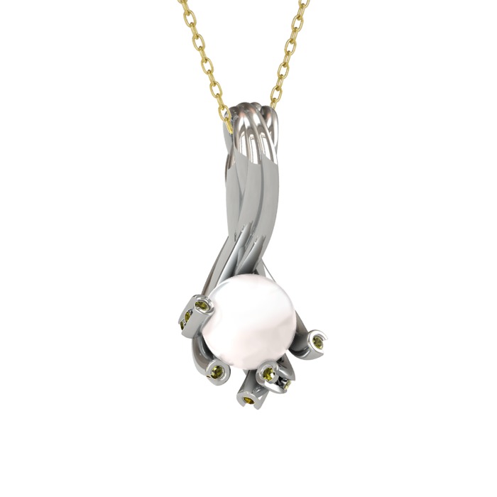 Inci ve peridot 925 ayar gümüş kolye (40 cm altın rolo zincir)