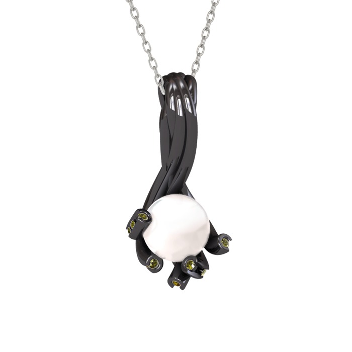 Inci ve peridot 925 ayar siyah rodyum kaplama gümüş kolye (40 cm beyaz altın rolo zincir)