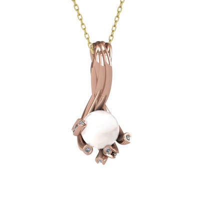 Inci ve pırlanta 18 ayar rose altın kolye (0.225 karat, 40 cm altın rolo zincir)