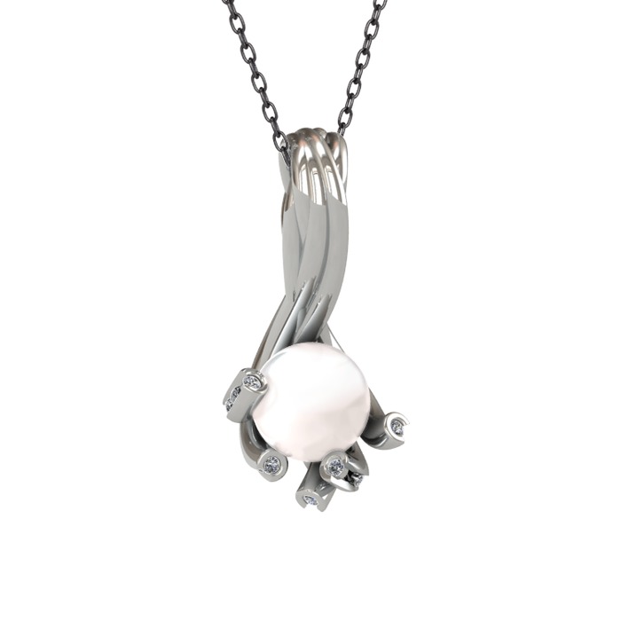 Inci ve pırlanta 925 ayar gümüş kolye (0.225 karat, 40 cm gümüş rolo zincir)
