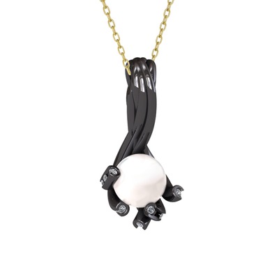 Inci ve pırlanta 925 ayar siyah rodyum kaplama gümüş kolye (0.225 karat, 40 cm gümüş rolo zincir)