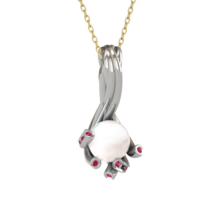 Inci ve rodolit garnet 8 ayar beyaz altın kolye (40 cm altın rolo zincir)