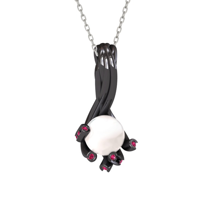 Inci ve rodolit garnet 925 ayar siyah rodyum kaplama gümüş kolye (40 cm gümüş rolo zincir)