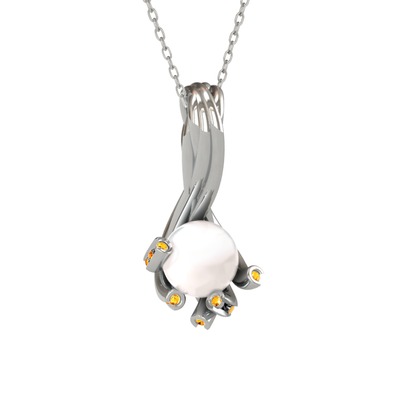 Inci ve sitrin 14 ayar beyaz altın kolye (40 cm beyaz altın rolo zincir)