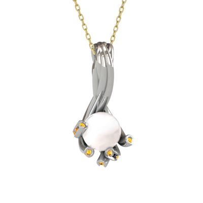Inci ve sitrin 18 ayar beyaz altın kolye (40 cm altın rolo zincir)