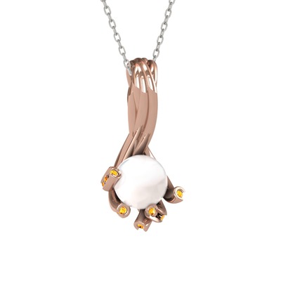 Inci ve sitrin 18 ayar rose altın kolye (40 cm beyaz altın rolo zincir)