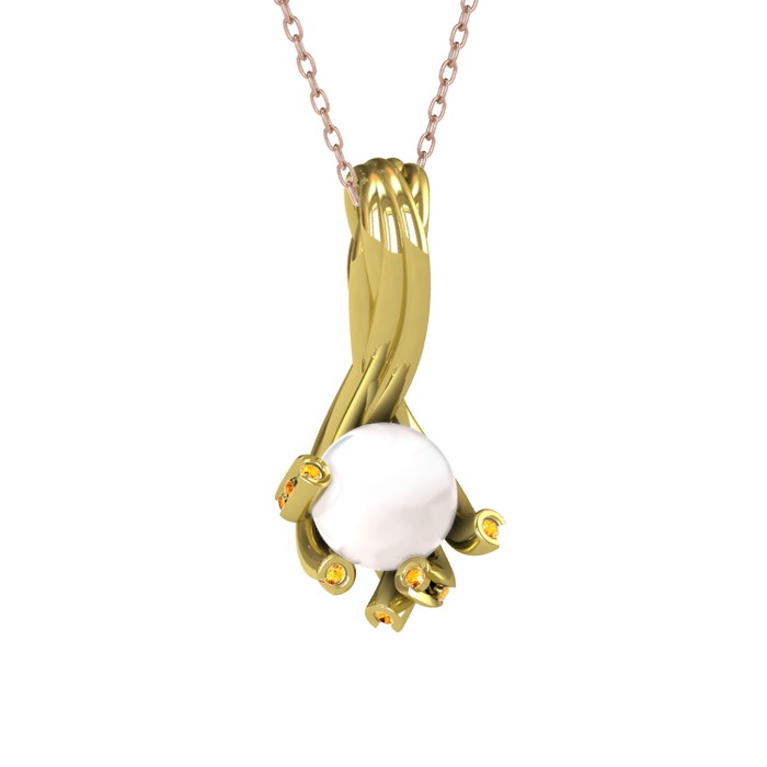 Inci ve sitrin 925 ayar altın kaplama gümüş kolye (40 cm rose altın rolo zincir)