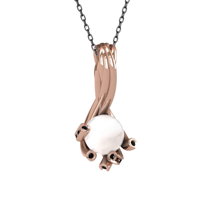 Inci ve siyah zirkon 14 ayar rose altın kolye (40 cm gümüş rolo zincir)