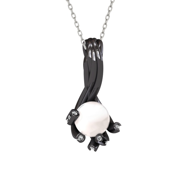 Inci ve swarovski 925 ayar siyah rodyum kaplama gümüş kolye (40 cm beyaz altın rolo zincir)