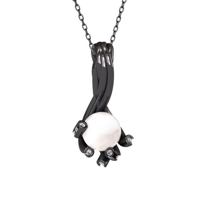 Inci ve swarovski 925 ayar siyah rodyum kaplama gümüş kolye (40 cm gümüş rolo zincir)
