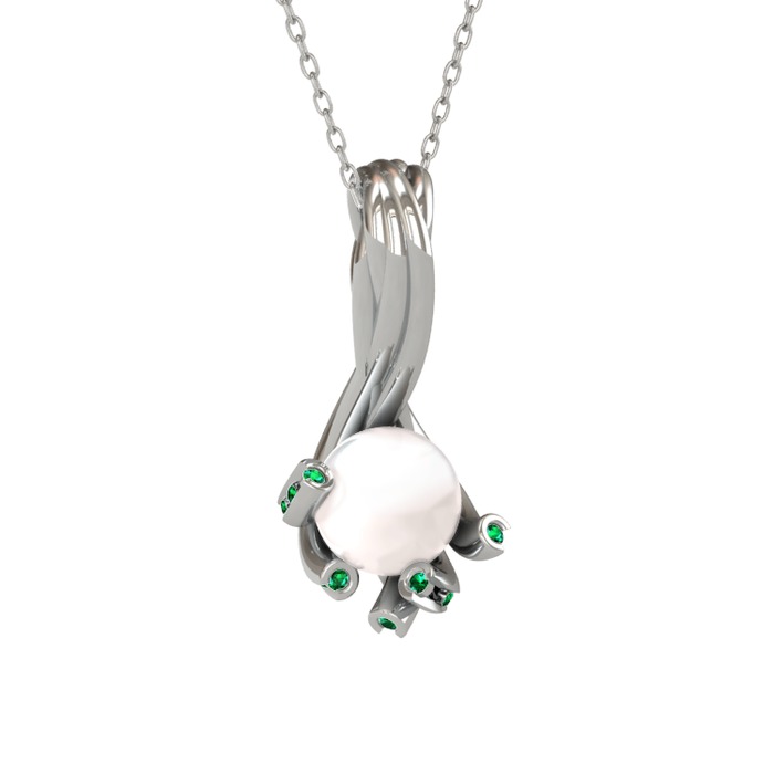 Inci ve yeşil kuvars 8 ayar beyaz altın kolye (40 cm beyaz altın rolo zincir)