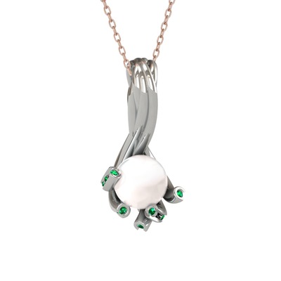 Inci ve yeşil kuvars 8 ayar beyaz altın kolye (40 cm gümüş rolo zincir)