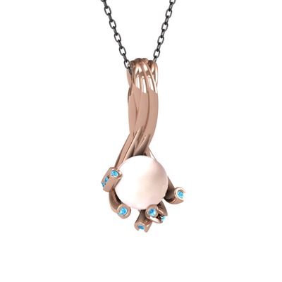 Pembe inci ve akuamarin 14 ayar rose altın kolye (40 cm gümüş rolo zincir)