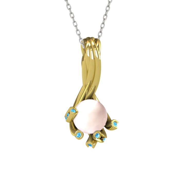 Pembe inci ve akuamarin 8 ayar altın kolye (40 cm beyaz altın rolo zincir)