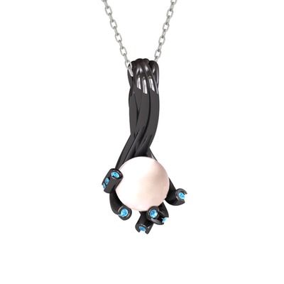 Pembe inci ve akuamarin 925 ayar siyah rodyum kaplama gümüş kolye (40 cm beyaz altın rolo zincir)