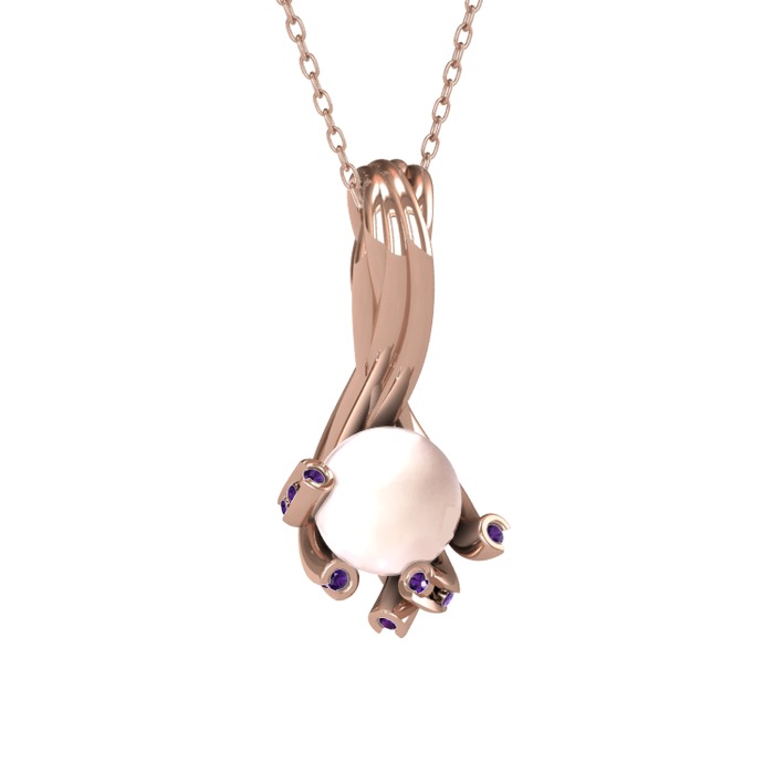 Pembe inci ve ametist 14 ayar rose altın kolye (40 cm rose altın rolo zincir)