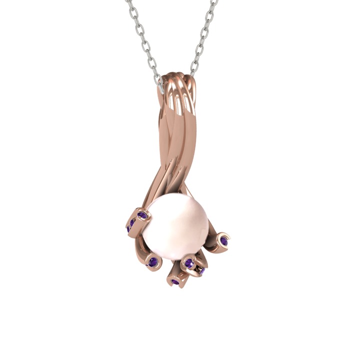Pembe inci ve ametist 8 ayar rose altın kolye (40 cm gümüş rolo zincir)