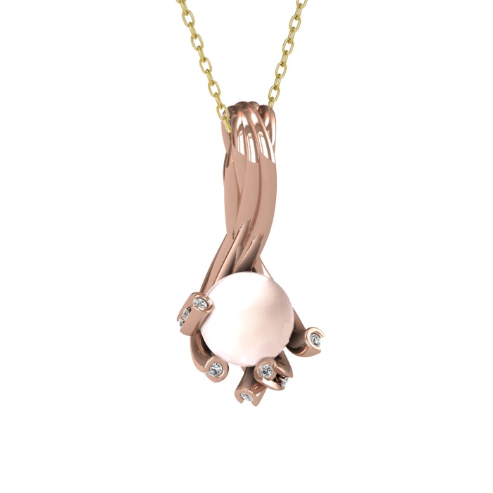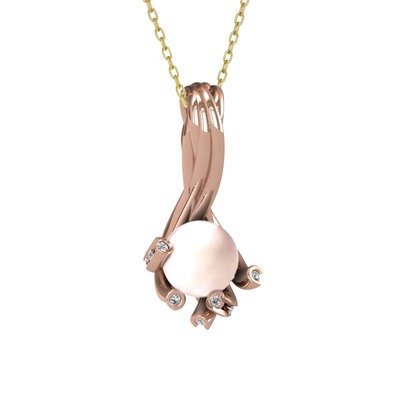 Pembe inci ve beyaz zirkon 14 ayar rose altın kolye (40 cm altın rolo zincir)