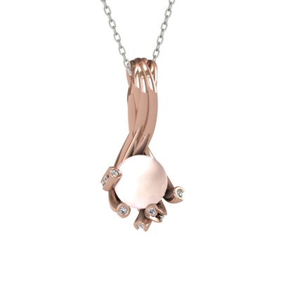 Pembe inci ve beyaz zirkon 18 ayar rose altın kolye (40 cm beyaz altın rolo zincir)