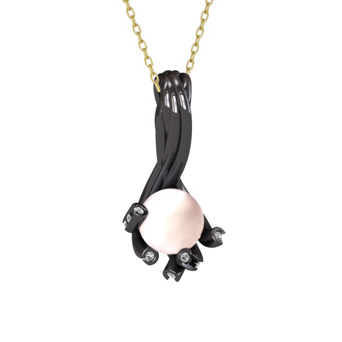 Pembe inci ve beyaz zirkon 925 ayar siyah rodyum kaplama gümüş kolye (40 cm gümüş rolo zincir)