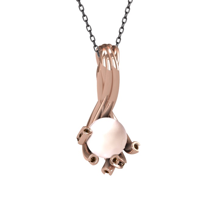 Pembe inci ve dumanlı kuvars 18 ayar rose altın kolye (40 cm gümüş rolo zincir)
