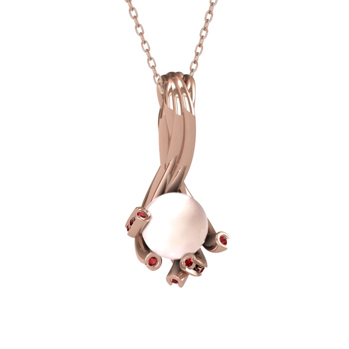 Pembe inci ve garnet 18 ayar rose altın kolye (40 cm rose altın rolo zincir)