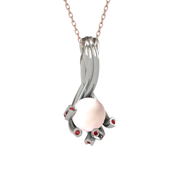 Pembe inci ve garnet 8 ayar beyaz altın kolye (40 cm gümüş rolo zincir)