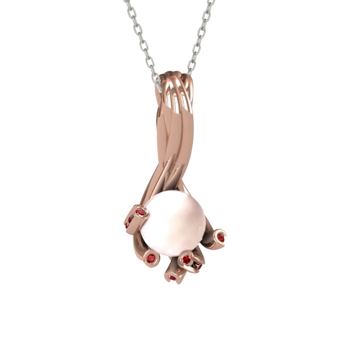 Pembe inci ve garnet 925 ayar rose altın kaplama gümüş kolye (40 cm beyaz altın rolo zincir)