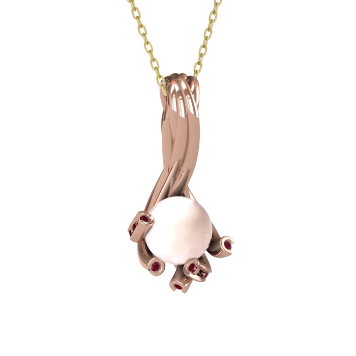 Pembe inci ve kök yakut 8 ayar rose altın kolye (40 cm altın rolo zincir)