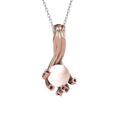 Pembe inci ve kök yakut 8 ayar rose altın kolye (40 cm beyaz altın rolo zincir)