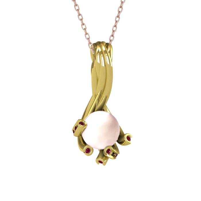 Pembe inci ve kök yakut 925 ayar altın kaplama gümüş kolye (40 cm rose altın rolo zincir)