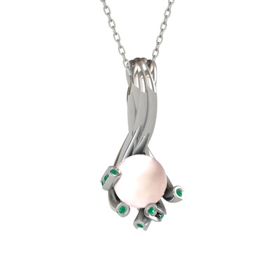 Pembe inci ve kök zümrüt 14 ayar beyaz altın kolye (40 cm gümüş rolo zincir)