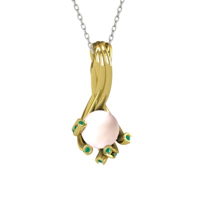 Pembe inci ve kök zümrüt 8 ayar altın kolye (40 cm beyaz altın rolo zincir)