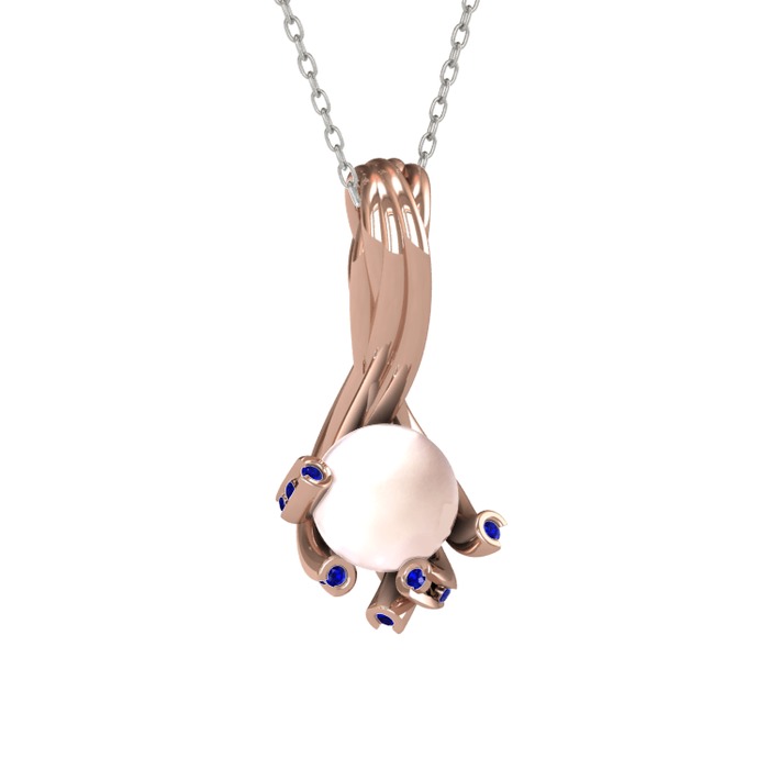 Pembe inci ve lab safir 18 ayar rose altın kolye (40 cm beyaz altın rolo zincir)