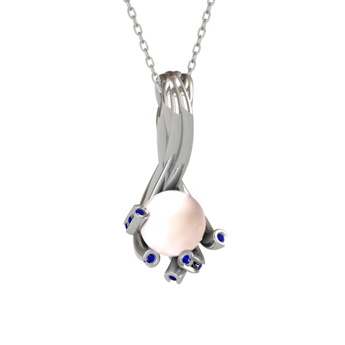 Pembe inci ve lab safir 925 ayar gümüş kolye (40 cm beyaz altın rolo zincir)
