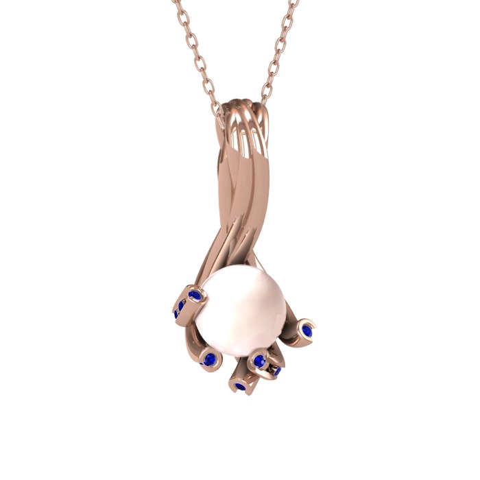 Pembe inci ve lab safir 925 ayar rose altın kaplama gümüş kolye (40 cm rose altın rolo zincir)
